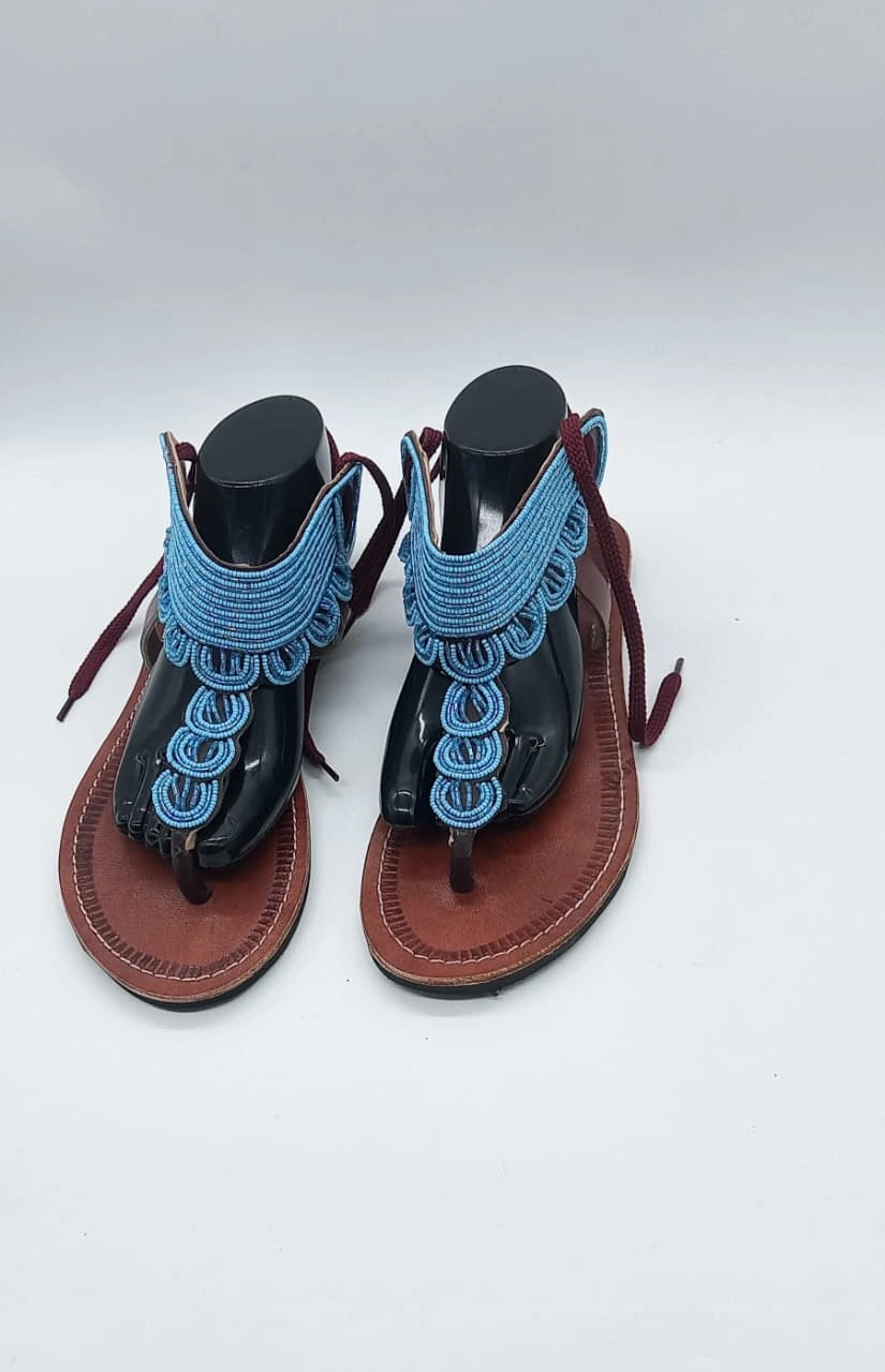 Step into bold elegance with these handmade beaded lace-up sandals, designed to turn heads wherever you go. Featuring intricate blue beadwork across the front and ankle, these sandals combine craftsmanship with standout style.
